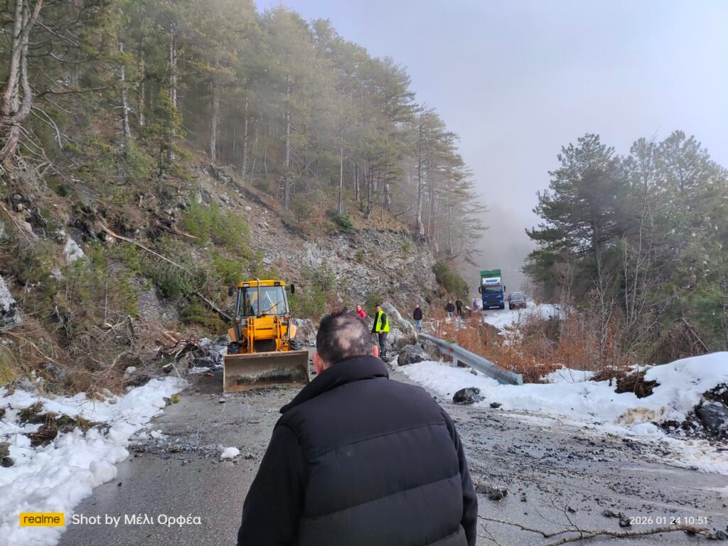 Στο σημείο βρίσκονται και τα Πριόνια Κυρίτσης, συμβάλλοντας στην επιχείρηση απομάκρυνσης των βράχων. Ο Δήμος προχώρησε σε άμεση ενημέρωση των πολιτών, συστήνοντας αυξημένη προσοχή στους διερχόμενους οδηγούς.