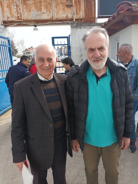 4) Ο παλαίμαχος ποδοσφαιριστής της Αναγέννησης Γιαννιτσών, του Απόλλωνα Καλαμαριάς και του Αιγινιακού Πολυχρόνης Τσαλκιτζής ( δεξιά ), με τον αθλητικογράφο Σάββα Αχλατλή .