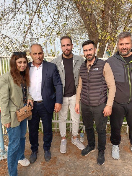 4) Ο Δήμαρχος Πύδνας Κολινδρού κ. Χρήστος Κομπατσιάρης και ο Αντιδήμαρχος κ. Στέλιος Χλεμές παρακολουθούν το μεγάλο ντέρμπι .