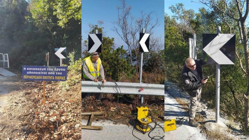 Συνεχίζονται οι εργασίες εγκατάστασης και αποκατάστασης πινακίδων σήμανσης από το προσωπικό του τμήματος Εργοταξίου της Υποδιεύθυνσης Τεχνικών Έργων της Περιφερειακής Ενότητας Πιερίας, στο οδικό δίκτυο αρμοδιότητάς της.