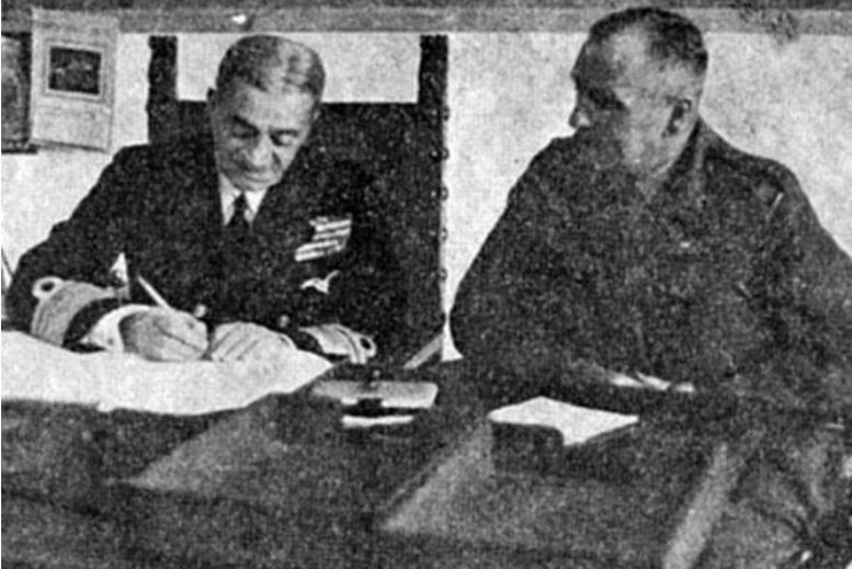 Τα Δωδεκάνησα στην Ελλάδα Ο αντιναύαρχος Περικλής Ιωαννίδης υπογράφει το πρωτόκολλο παράδοσης των Δωδεκανήσων.Τα Δωδεκάνησα (για την ακρίβεια είναι 14) ήταν από αρχαιοτάτων χρόνων δεμένα