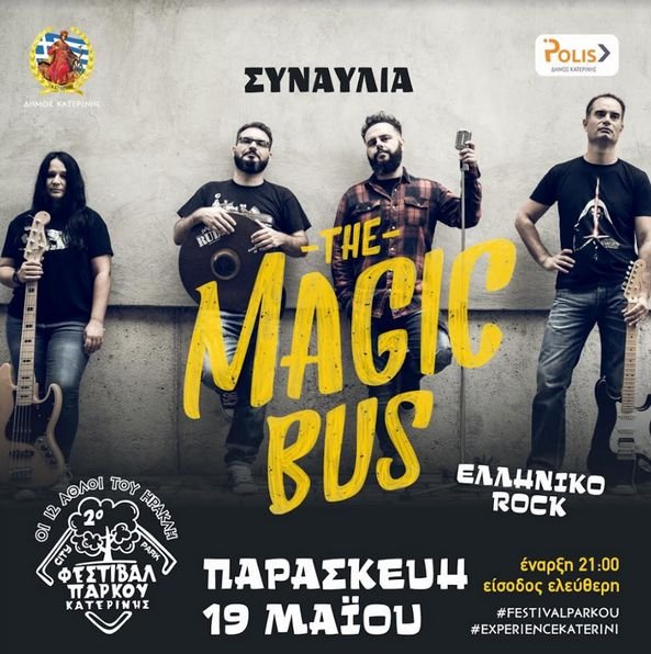 Συναυλίες με το μουσικό σχήμα «The magic bus» σε ελληνικό ροκ ρεπερτόριο, στις 21:00, με το Μουσικό Σχολείο Κατερίνης και τη ροκ μπάντα του, στις