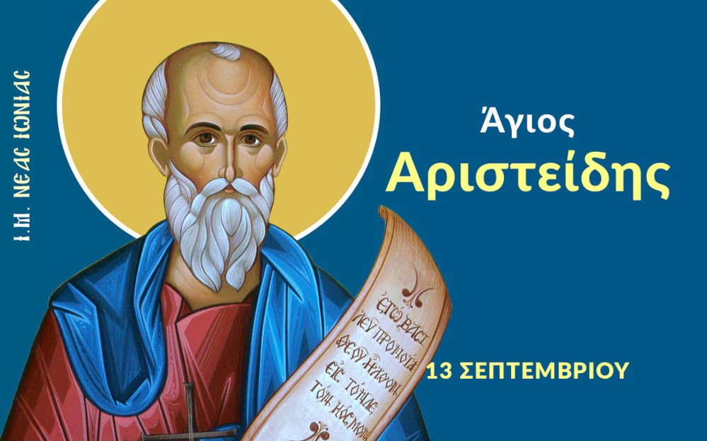 Άγιος Αριστείδης Ημερομηνία εορτής: 13/09/2024Τύπος εορτής: Σταθερή.Εορτάζει στις 13 Σεπτεμβρίου εκάστου έτους.ΒιογραφίαΟ Άγιος Αριστείδης ήταν Αθηναίος ευπατρίδης, φιλόσοφος εξ ενδόξου αθηναϊκού γένους, και έζησε κατά