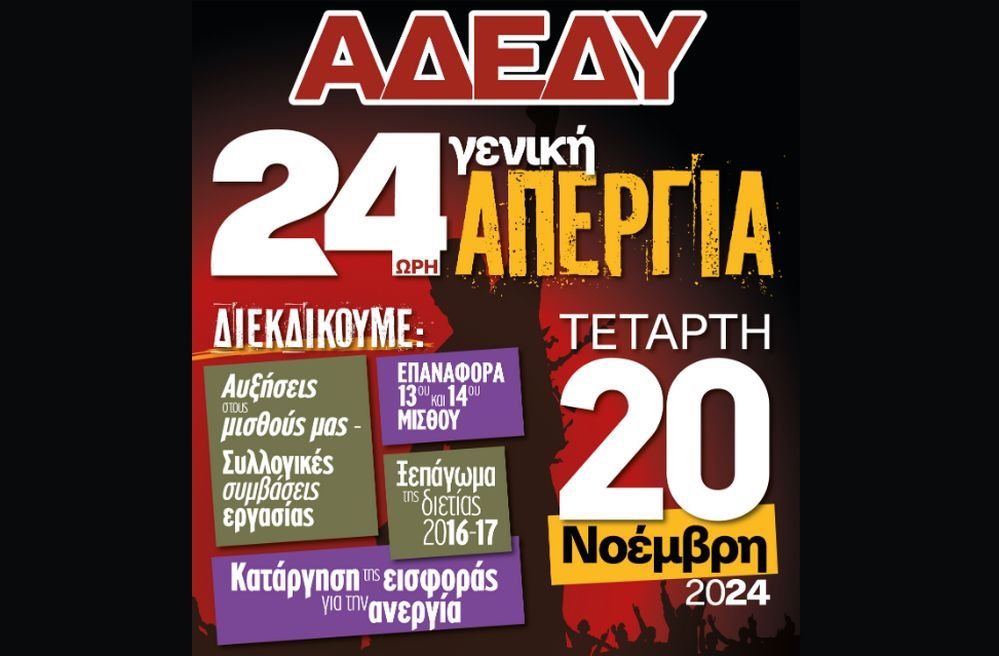 «Κάλεσμα σε 24ωρη απεργία 20/11 από ΑΔΕΔΥ Πιερίας»