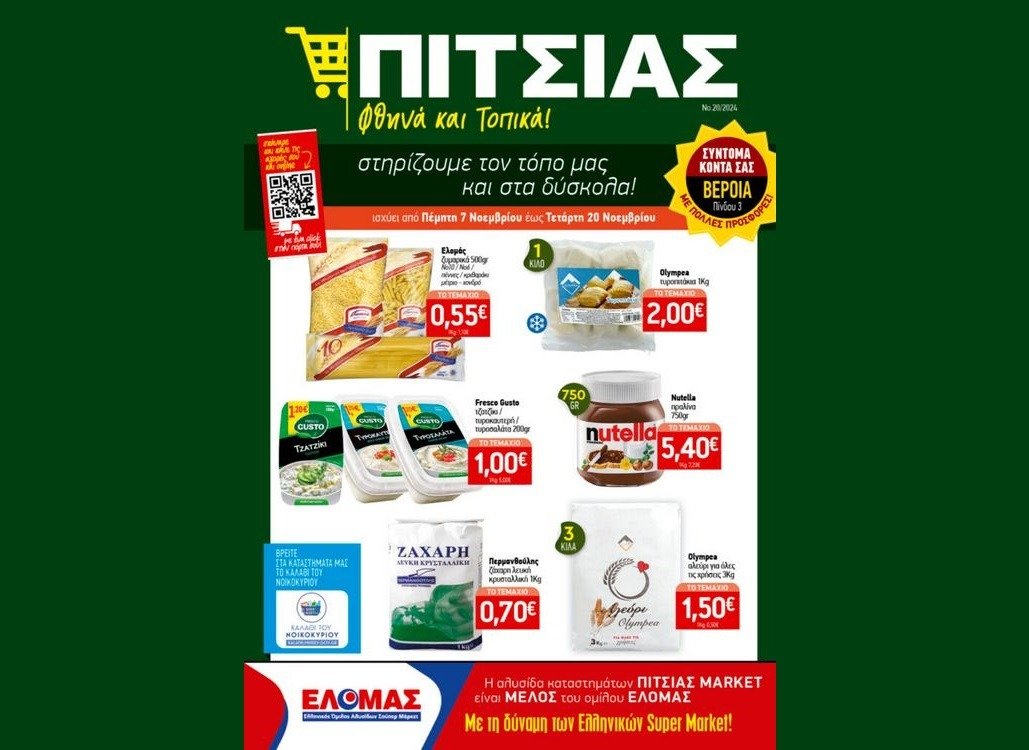 Γιορτάζουμε το νέο μας κατάστημα στην Βέροια, Πίνδου 3 και ρίχνουμε τις τιμές έως και 20 Νοεμβρίου. και στο site μας https://pitsias.eu/filladia/ Νέο φυλλάδιο ΠΙΤΣΙΑΣ ΜΑΡΚΕΤ ΑΠΌ