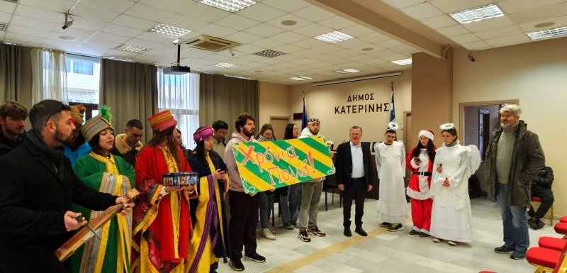 Στο Δημαρχείο Κατερίνης χριστουγεννιάτικες μελωδίες & παραδοσιακά κάλαντα άκουσε σήμερα, παραμονή Χριστουγέννων, ο Δήμαρχος Κατερίνης, Ιωάννης Ντούμος, από παιδιά, μέλη χορωδιών και συλλόγων.Μέσα σε μία