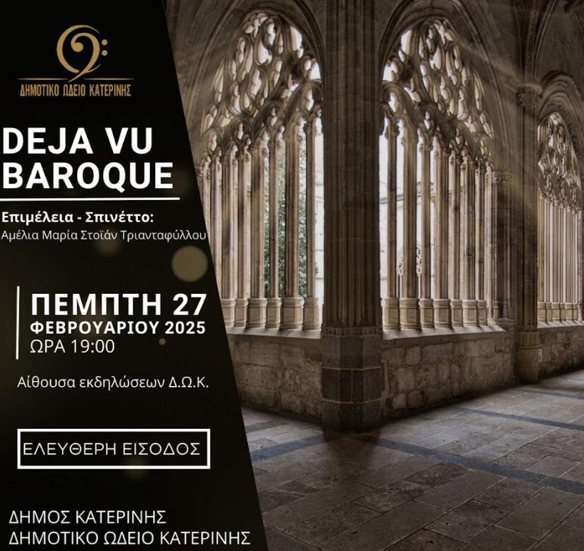 Την Πέμπτη 27 Φεβρουαρίου, ώρα 19:00 στο Δημοτικό Ωδείο Κατερίνης (αίθουσα εκδηλώσεων), θα πραγματοποιηθεί εκπαιδευτική – καλλιτεχνική παράσταση ανοιχτή στο κοινό με θέμα “Déjà vu