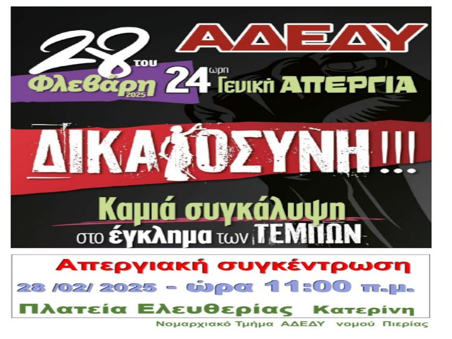 Την Παρασκευή 28 Φεβρουαρίου συμμετέχουμε ενεργά στις δύο προγραμματισμένες κινητοποιήσεις στην Κατερίνη για το έγκλημα των Τεμπών. α) Στην απεργιακή συγκέντρωση στις 11:00 πμ στην Πλατεία