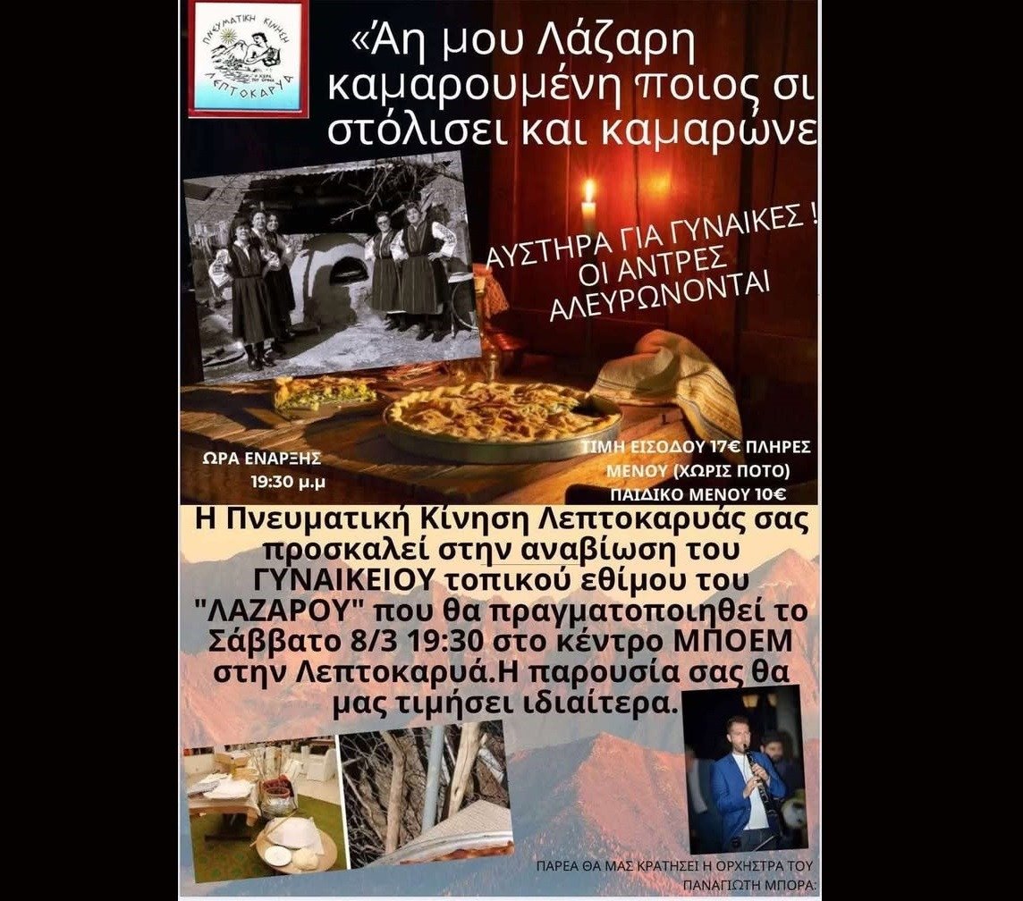 Γράφει ο χοροδιδάσκαλος Μπύρος Μιχαήλ Την παραμονή του Σαββάτου των Αγίων Θεοδώρων τα κορίτσια και οι παντρεμένες γυναίκες της Λεπτοκαρυάς βρίσκονταν σε πυρετό προετοιμασίας!! Έκαναν
