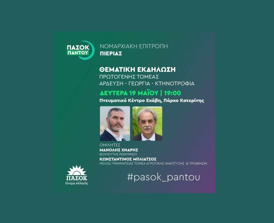 Τη Δευτέρα 19 Μαΐου στις 19:00 στην Εκάβη Ελάτε στην εξαιρετικά ενδιαφέρουσα εκδήλωση για τον Πρωτογενή Τομέα, όπου θα συζητηθούν κρίσιμα θέματα γύρω από την