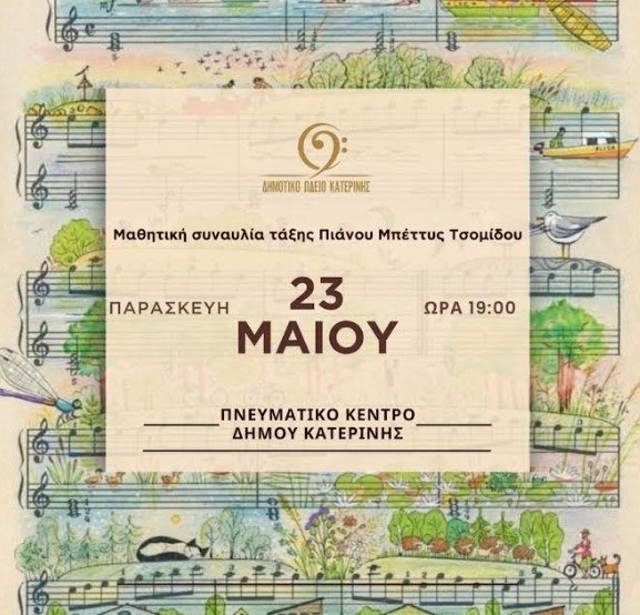 Δημοτικό Ωδείο: Μαθητική συναυλία τάξης πιάνου Μπέττυς Τσομίδου – Παρασκευή 23/05 & ώρα 19:00 στο Πνευματικό Κέντρο