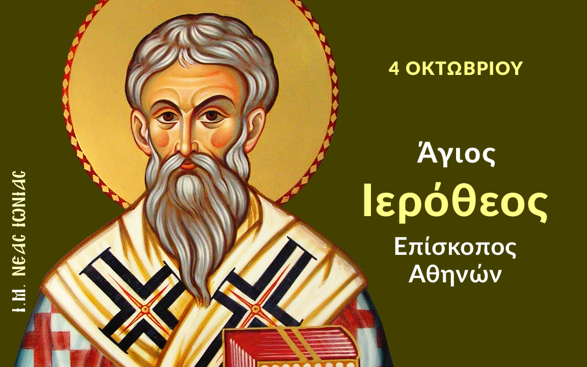 Άγιος Ιερόθεος Ημερομηνία Εορτής: 04/10/2025Τύπος εορτής: Σταθερή. Εορτάζει στις 4 Οκτωβρίου εκάστου έτους. Ο Άγιος Ιερόθεος ήταν πλατωνικός φιλόσοφος και ένας από τα εννέα μέλη