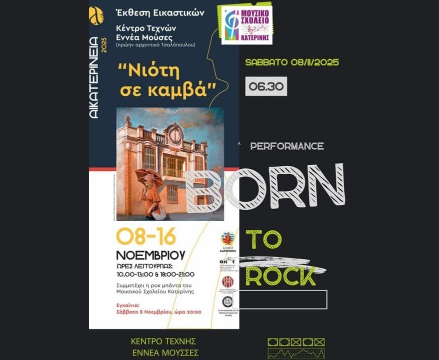 Εγκαίνια: Σάββατο 08 Νοεμβρίου & ώρα 20:00 Σε συνεργασία με τον Σύλλογο Εικαστικών Πιερίας & με την συμμετοχή ροκ μπάντας του Μουσικού Σχολείου 08-16 ΝΟΕΜΒΡΙΟΥ