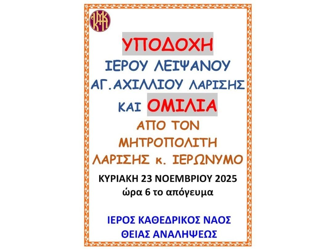 Καλείσθε σε τακτική συνεδρίαση του Δημοτικού Συμβουλίου Κατερίνης, η οποία θα πραγματοποιηθεί διά ζώσης στις 26 Νοεμβρίου 2025, ημέρα Τετάρτη και ώρα 18:00, σύμφωνα με