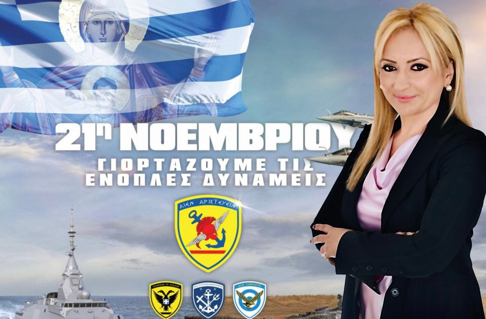 Σήμερα τιμούμε μια διπλή και ιδιαίτερα σημαντική εορτή· την Ημέρα των Ενόπλων Δυνάμεων, αφιερωμένη στους ανθρώπους που αποτελούν το ακλόνητο στήριγμα της εθνικής άμυνας και