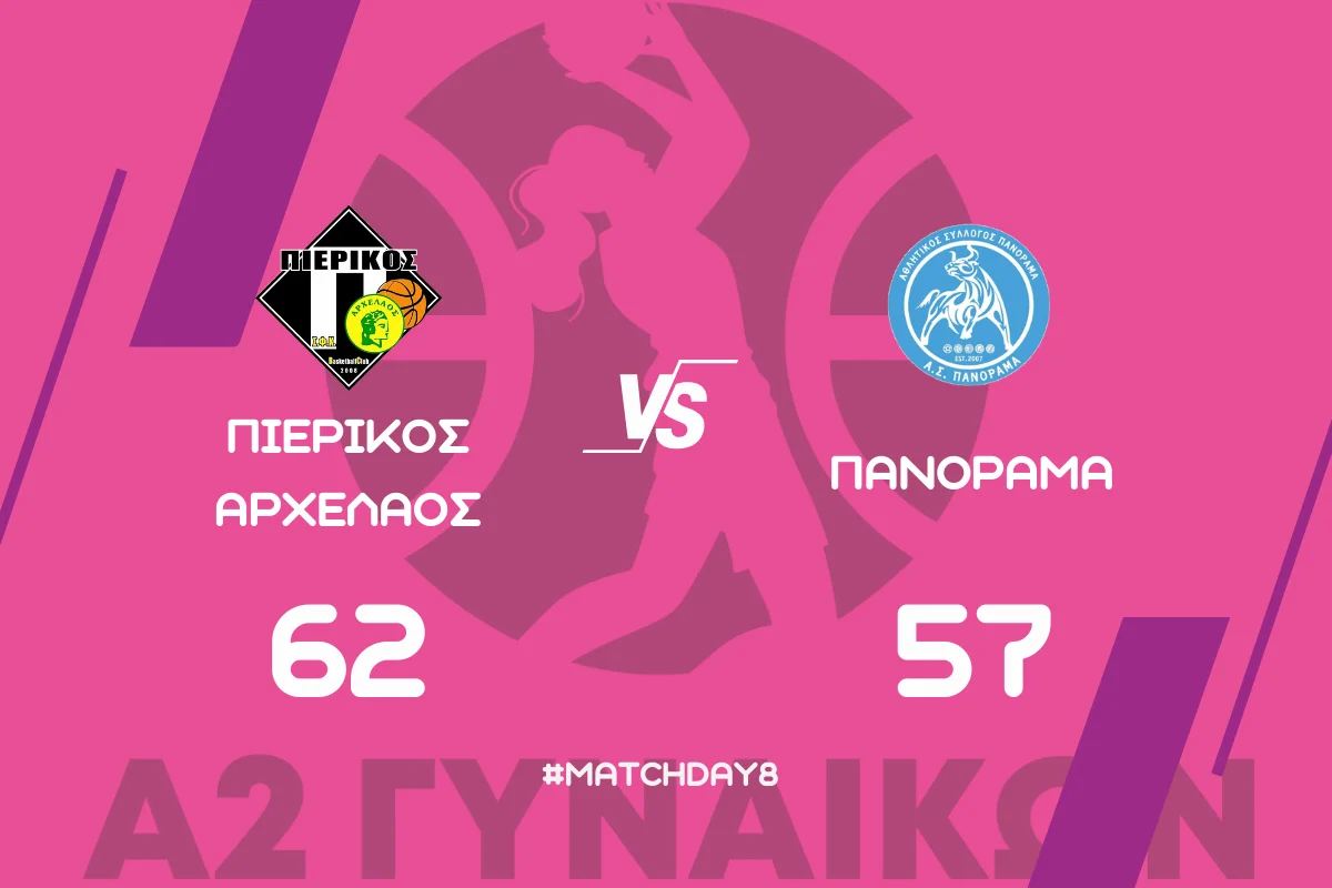 Ο Πιερικός Αρχέλαος επικράτησε με 62-57 επί του Πανοράματος στο Κλειστό Γυμναστήριο Σιδηροδρομικού Σταθμού Κατερίνης σε αγώνα για την 8η αγωνιστική του 2ου ομίλου της
