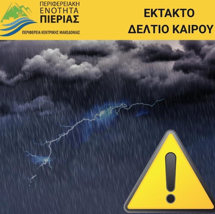 Η Πιερία στο επίκεντρο της κακοκαιρίας με έντονες βροχές και καταιγίδες Από σήμερα, Τετάρτη 3 Δεκεμβρίου 2025, έως και την Παρασκευή 5 Δεκεμβρίου, αναμένονται πανελλαδικά