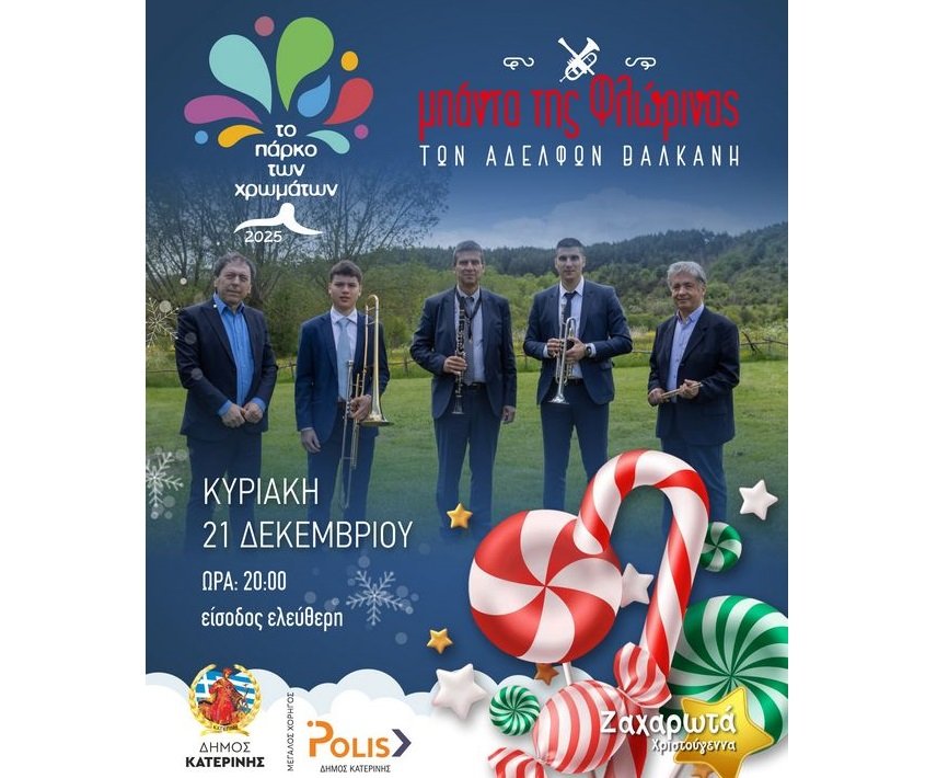 Αύριο Κυριακή 21 Δεκεμβρίου, στις 20:00, το Πάρκο των Χρωμάτων πλημμυρίζει από αυθεντικούς ήχους και χρώματα της ελληνικής μουσικής παράδοσης, με την ιστορική Μπάντα της