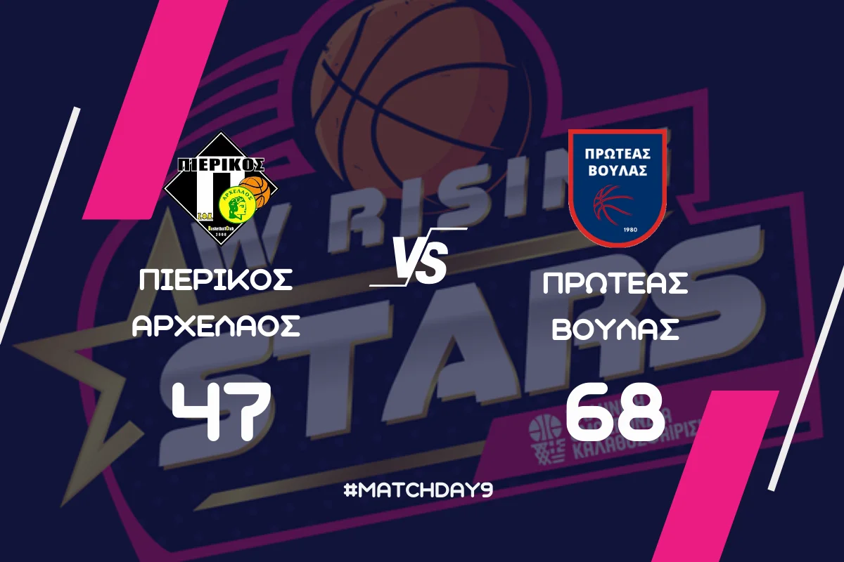 Ο Πιερικός Αρχέλαος ηττήθηκε με 68-47 από τον Πρωτέα Βούλας, στο Δημοτικό Αθλητικό Κέντρο Πρέβεζας, σε αγώνα για την 9η αγωνιστική του W Rising Stars.