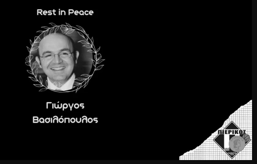 Ο Πιερικός Αρχέλαος εκφράζει τη βαθιά του οδύνη για την απώλεια του Γιώργου Βασιλόπουλου, ο οποίος έφυγε από την ζωή σε ηλικία 53 ετών. Ο εκλιπών