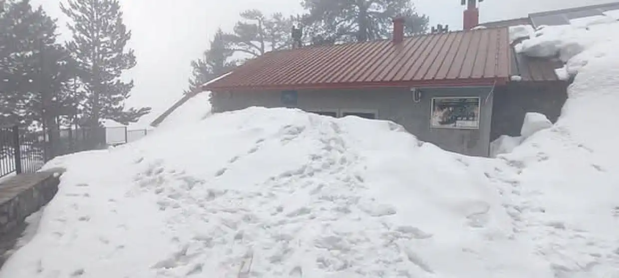 Ο καιρός θυμίζει χειμώνα στον Όλυμπο, με το καταφύγιο Σπ. Αγαπητός να σκεπάζεται από χιόνι. Ο καιρός θυμίζει περισσότερο χειμώνα παρά άνοιξη, ιδιαίτερα τις τελευταίες