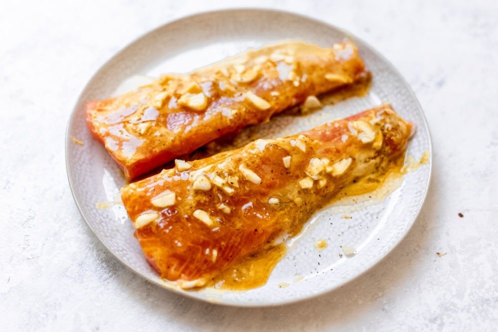 Σολομός βουτύρου Υλικά:1 κ. γλ. ξύσμα πορτοκαλιού και 1/2 φλ. τσαγιού χυμό1 κ. γλ. σάλτσα σόγιας χαμηλής περιεκτικότητας σε νάτριο1 φλ. τσαγιού λευκό ρύζι μακρύκοκκο2