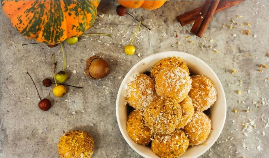 Μπουκιές ενέργειας Υλικά: 1 1/2 φλ. τσαγιού ωμά πεκάν1/2 κ. γλ. μπαχαρικό κολοκύθας σε σκόνη1/2 κ. γλ. θαλασσινό αλάτι2 φλ. τσαγιού χουρμάδες, χωρίς κουκούτσι Εκτέλεση: