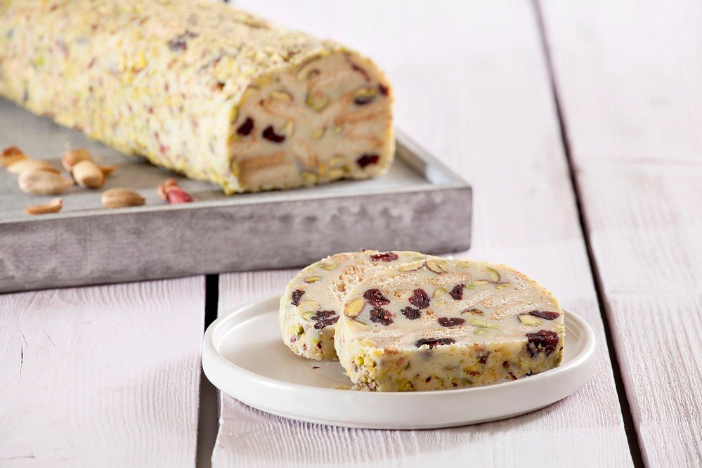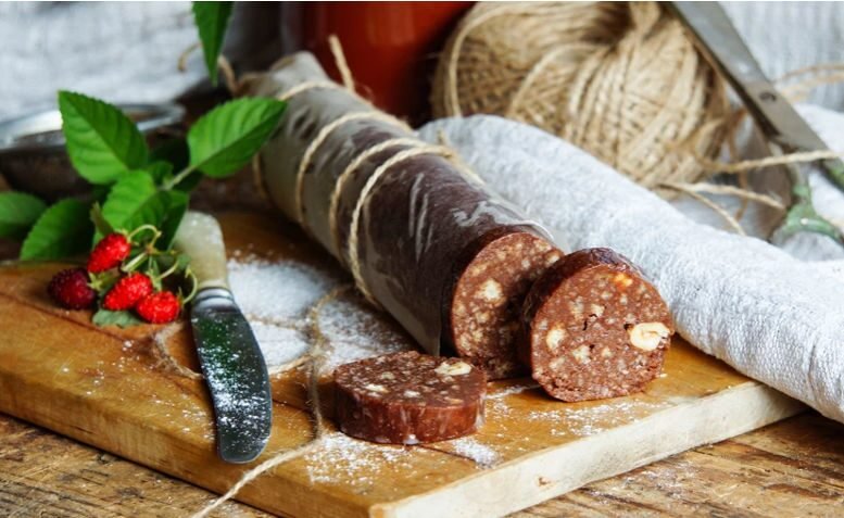 Κορμός με λευκή σοκολάτα Υλικά για 4 άτομα:200 γραμ. λευκή σοκολάτα50 γραμ. σοκολάτα γάλακτος100 γραμ. ζάχαρη300 γραμ. τριμμένα μπισκότα πτι μπερ2 κ.τ.σ. ψιλοκομμένα φουντούκια (προαιρετικά)100