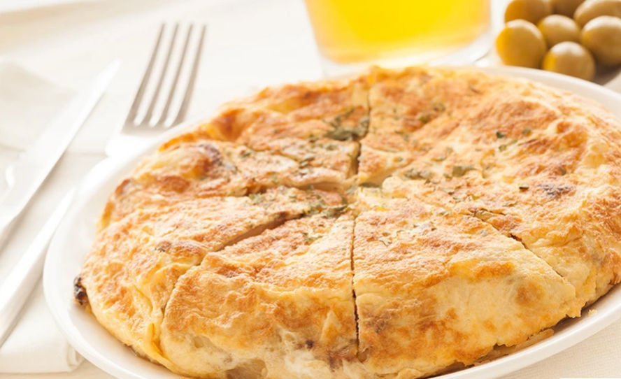 Ισπανική ομελέτα Υλικά:1 κρεμμύδι, κομμένο σε φέτες3 πατάτες, κομμένες σε λεπτές φέτες2 φλ. τσαγιού ελαιόλαδο6 αβγάΑλάτι ΕκτέλεσηΒήμα 1Ζεστάνετε το λάδι σε ένα τηγάνι.Βήμα 2Τηγανίστε τις