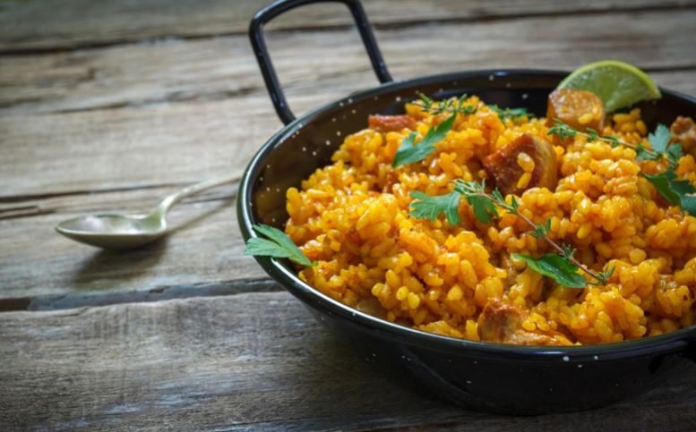 Παέγια με κοτόπουλο Υλικά: 4 φιλέτα από μπούτι κοτόπουλο, χοντροκομμένα 1 κουταλιά της σούπας καρύκευμα Cajun 400 γρ. ντομάτες, κομμένες σε κύβους Μείγμα καφέ και