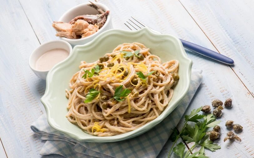Ζυμαρικά με τόνο Υλικά:150 ml έξτρα παρθένο ελαιόλαδο1 φλ. τσαγιού τριμμένη φρυγανιά2 κ. γλ. αποξηραμένα ιταλικά βότανα2 σκελίδες σκόρδο, ψιλοκομμένες2 κ. γλ. σπόρους μάραθου1/3 φλ.