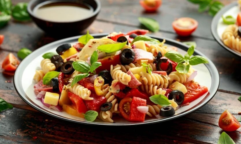 Ιταλική σαλάτα Υλικά:2 φλ. τσαγιού ζυμαρικά βρασμένα1 φλ. τσαγιού μπάλες μοτσαρέλας κομμένες στη μέση1/2 φλ. τσαγιού σαλάμι κομμένο στη μέση2 φλ. τσαγιού φύλλα σπανάκι2 φλ.