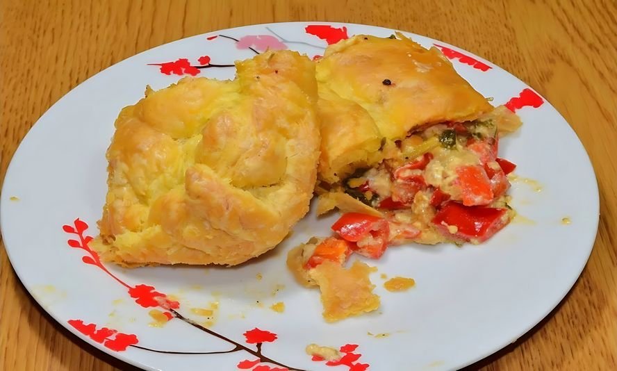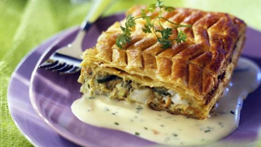 Κοτόπιτα με λαχανικά Υλικά:3 φλ. τσαγιού ψιλοκομμένο, μαγειρεμένο κοτόπουλο2 1/2 φλ. τσαγιού κατεψυγμένο μείγμα λαχανικών2 κ. σ. ανάλατο βούτυρο2 φλ. τσαγιού ζωμό κότας2 κ. σ. αλεύρι