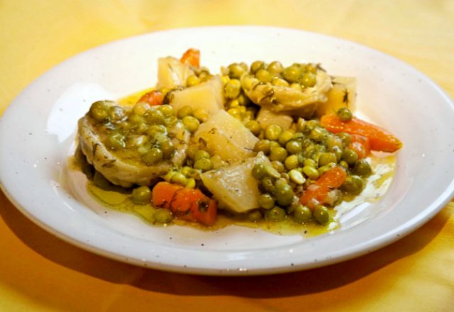 Μοσχαράκι Υλικά 1 κιλό μοσχαράκι σε μερίδες 4 πατάτες, σε κύβους 4 καρότα, σε κύβους 1 κρεμμύδι ψιλοκομμένο 1 1/2 κ. γλ. σκόνη ζωμού βοδινού
