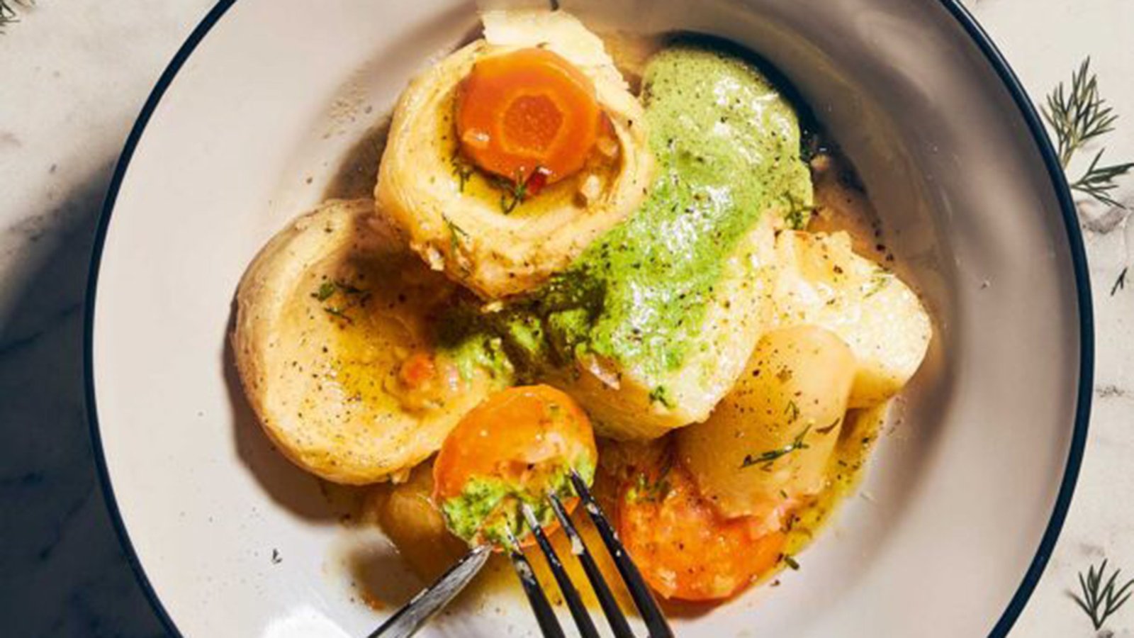Μικρά ρολάκια κοτόπουλο Υλικά 4 φιλέτα στήθος κοτόπουλου 4 φέτες ζαμπόν 1 μεγάλο καρότο σε στικ 150 gr πράσινα φασολάκια φρέσκα ή κατεψυγμένα 50 gr