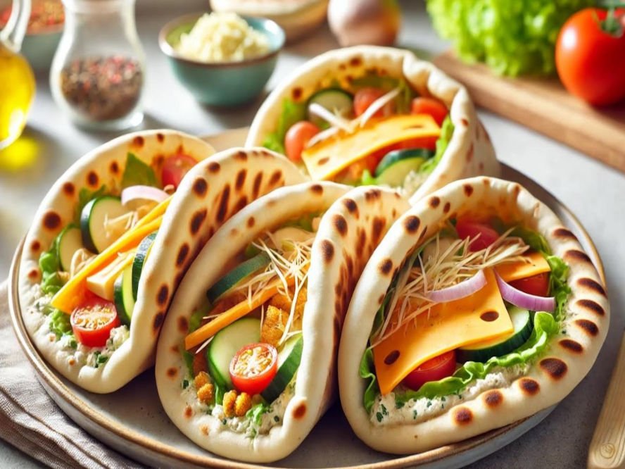 Πίτσα με λαχανικά Υλικά:100 γρ. αλεύρι ολικής άλεσης1 κ. γλ. αποξηραμένη μαγιά125 ml ζεστό νερό200 γρ. σάλτσα με ψιλοκομμένες ντομάτεςΜια χούφτα ντοματίνια κομμένα στη μέση1