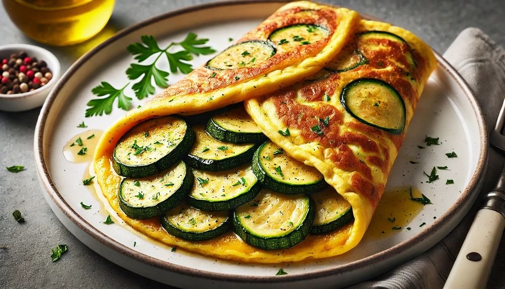 Ομελέτα λαχανικών Υλικά: 2 φρέσκα κρεμμυδάκια ψιλοκομμένα ½ κόκκινη πιπεριά κομμένη σε μικρά στικς 2 μεγάλα μανιτάρια κομμένα σε φέτες 1 κολοκυθάκι κομμένο σε ροδέλες 4-5 ντοματίνια κομμένα στη μέση
