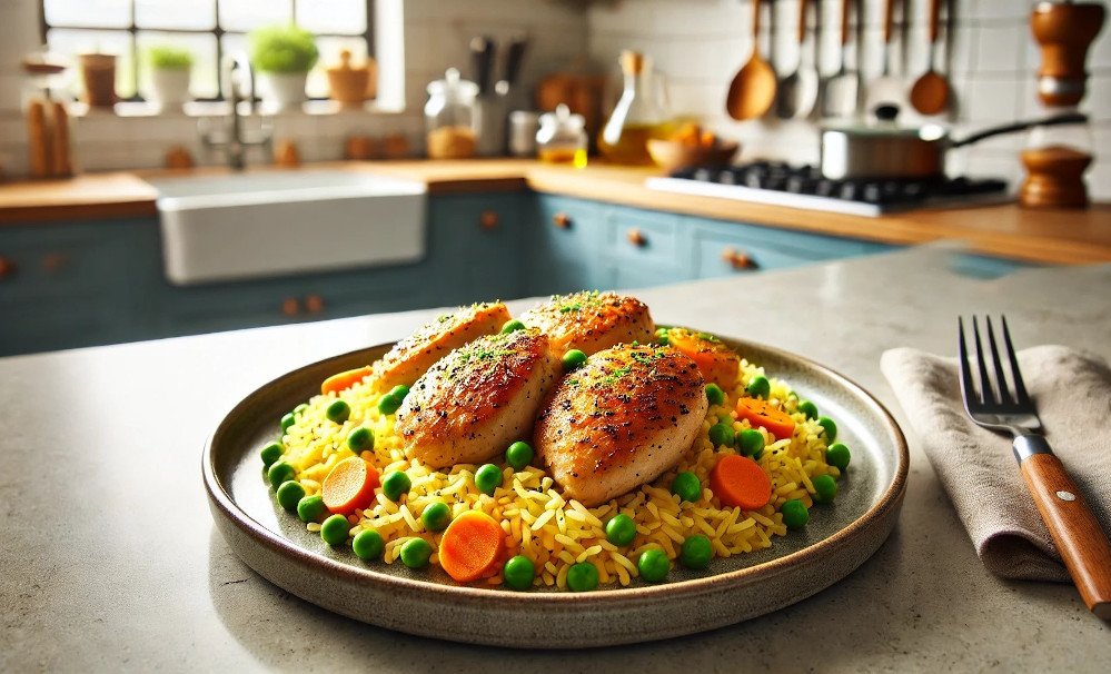 Ζουμερές Χοιρινές Μπριζόλες με Πορτοκάλι & Κίτρινο Ρύζι με Καρότο και Αρακά! Ένα πιάτο γεμάτο χρώμα, γεύση και αρώματα! Το τρυφερό χοιρινό παντρεύεται τέλεια με