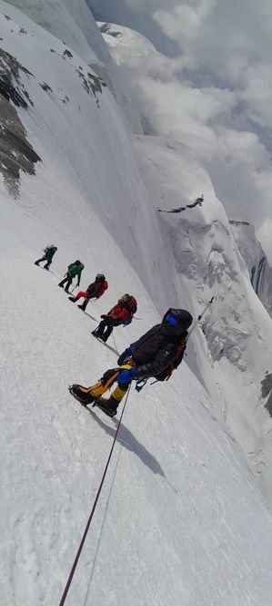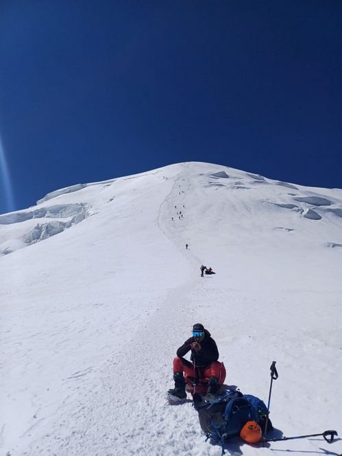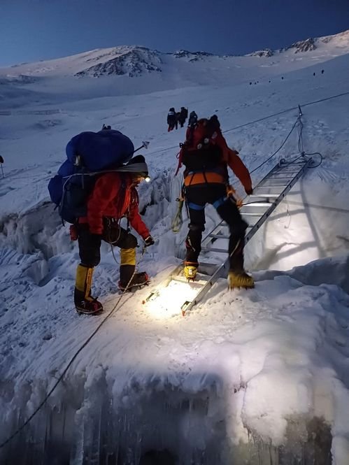 Σε 3 μέρες ξανανεβήκαμε στα 6100μ και την επόμενη έγινε το summit push. Ξεκινήσαμε 2:30 το πρωί και φτάσαμε στην κορυφή στις 13:00 με καλές καιρικές συνθήκες.