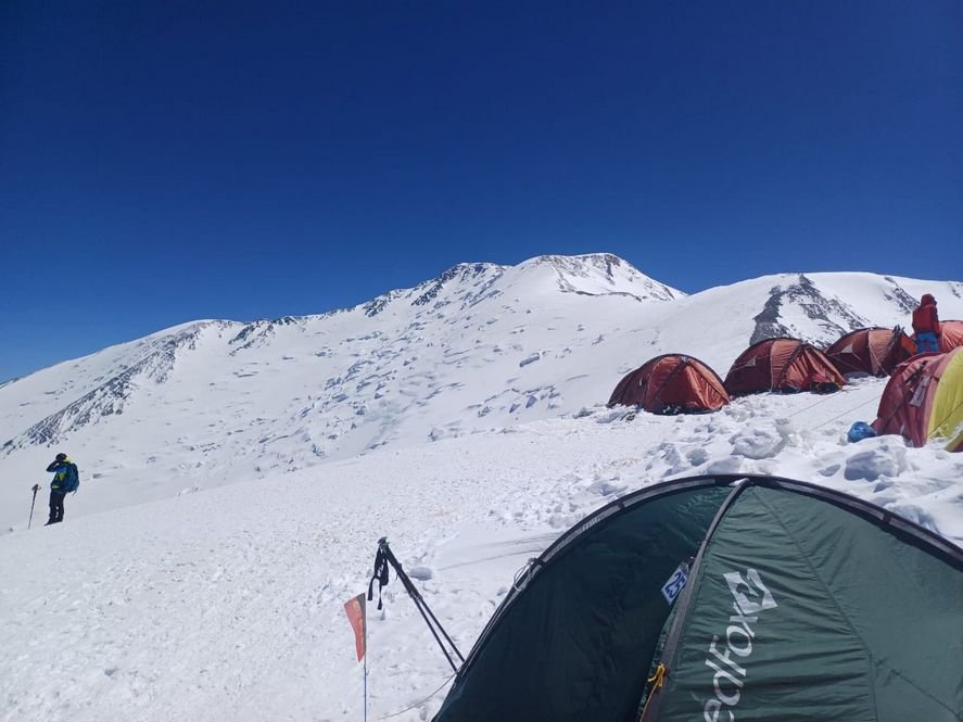 Επιστρέψαμε στο camp στα 6100m με χιόνι και αέρα μετά από 5 ώρες, όπου και διανυκτερεύσαμε. Την επόμενη κατεβήκαμε στο base camp. Είναι περίεργο πως λειτουργεί ο ανθρώπινος εγκέφαλος. Μετά από την προσπάθεια 15 ωρών για την κορυφή επιστρέψαμε σε κάτι που θεωρούσαμε ασφαλές. Μια σκηνή πάνω στον πάγο στα 6100μ….