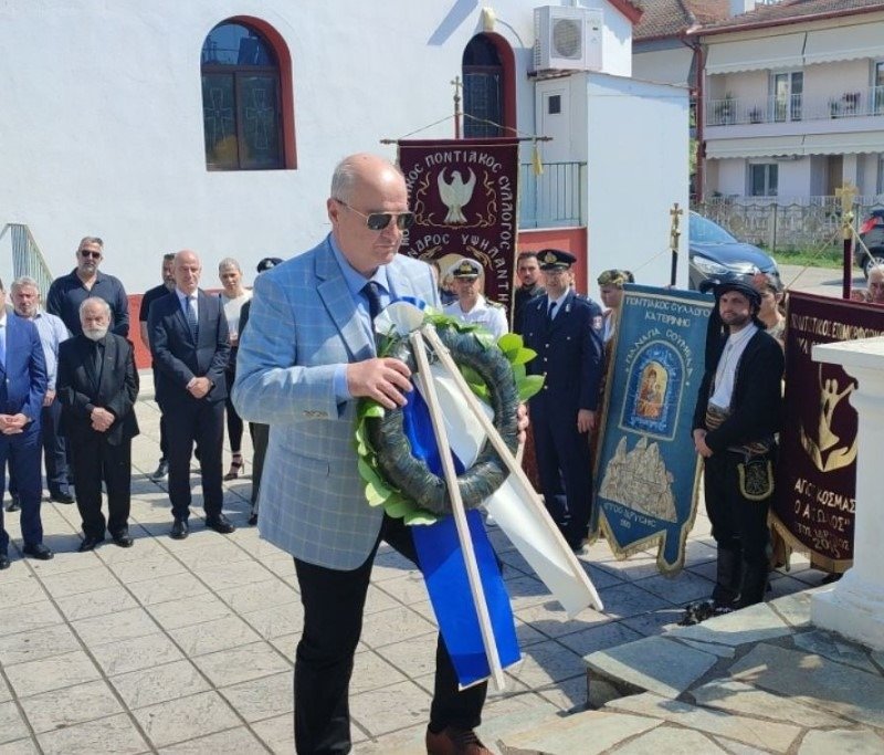 Ακολούθησε κατάθεση στεφάνων στο Μνημείο Κρητών Πεσόντων από εκπροσώπους αρχών, φορέων και πολιτιστικών συλλόγων. Στεφάνια κατέθεσαν – μεταξύ άλλων – η Αντιπεριφερειάρχης Πιερίας, Σοφία Μαυρίδου, ο Πρόεδρος του Δημοτικού Συμβουλίου, Χαράλαμπος Χρ. Μπρουσκέλης (ως εκπρόσωπος του Δημάρχου Κατερίνης, Ιωάννη Ντούμου), καθώς και εκπρόσωποι της ΧΧΙV Τ.Θ. Ταξιαρχίας Λιτοχώρου, της Διεύθυνσης Αστυνομίας Πιερίας, του Πυροσβεστικού Σώματος, του Λιμενικού Τμήματος Σκάλας Κατερίνης, της Διοικούσας Επιτροπής Πιερίας της Νέας Δημοκρατίας, του κόμματος «ΝΙΚΗ». Επίσης, εκπρόσωποι των πολιτιστικών συλλόγων: «Αλέξανδρος Υψηλάντης» – Νέας Τραπεζούντας, «Παναγία Σουμελά» Κατερίνης, Θρακική Εστία Κατερίνης, Κοκκινοπλιτών Ν.Πιερίας «Ο ΟΛΥΜΠΟΣ», «Άγιος Κοσμάς ο Αιτωλός» – Ανδρομάχης, Εργαστήρι Κρητικής Παράδοσης & Πολιτισμού «ΤΟ ΞΑΘΕΡΙ», Κρητών Ν. Πιερίας «ΟΙ ΣΤΑΥΡΑΕΤΟΙ» κ.ά.