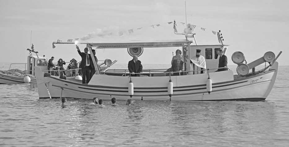 Εκεί ο παπάς μπαίνει μέσα σε ένα καΐκι, το οποίο «ανοίγεται» στα βαθιά της θάλασσας και αφήνει το σταυρό μέσα στη θάλασσα, ψάλλοντας το «Εν Ιορδάνη βαπτιζομένου Σου Κύριε . . .» ώστε να αγιαστούν τα νερά.
