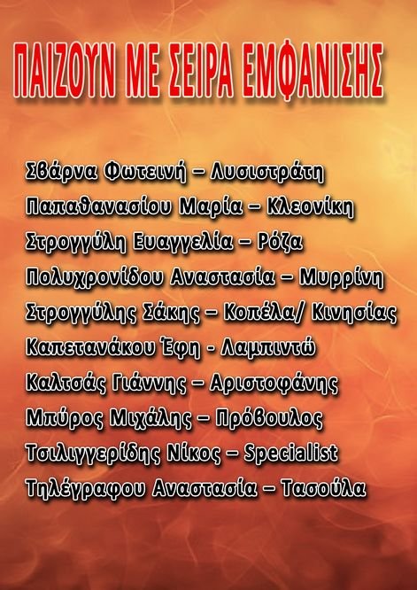 Υπόσχονται εκστατικές καταστάσεις γέλιου, βιωματικές εμπειρίες και δυνατές συγκινήσεις, μιλώντας στην κοινή για όλους μας, γλώσσα… Τη γλώσσα των αισθήσεων και των προθέσεων (εμπλουτισμένη ωστόσο καί με τη Λιτοχωρινή ντοπιολιαλιά!)