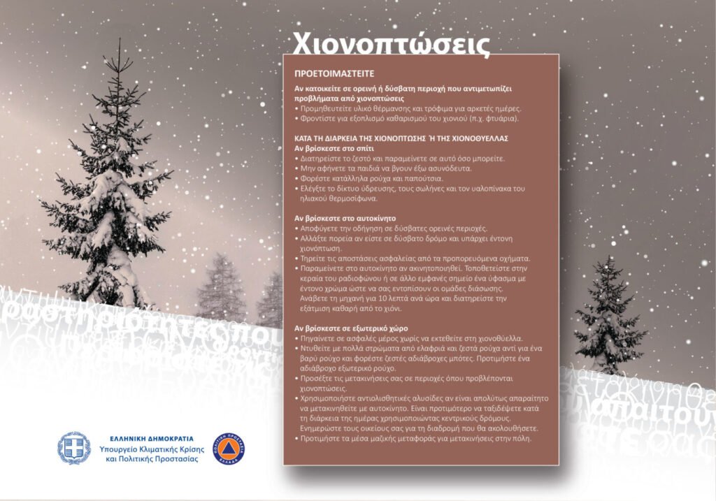 Σε περιοχές όπου προβλέπεται η εκδήλωση χιονοπτώσεων και παγετού:
