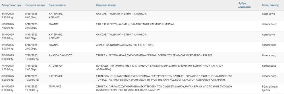 Προγραμματισμένη διακοπή ρεύματος σε περιοχές της Πιερίας – Δείτε που