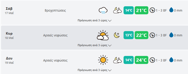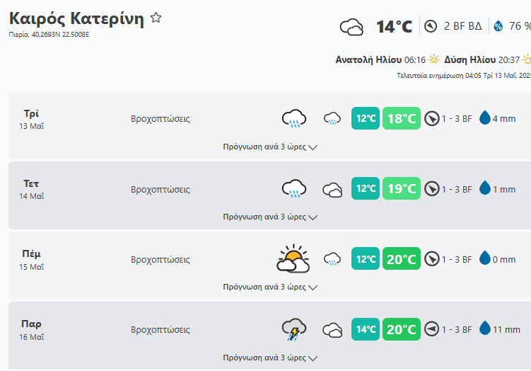 Τρίτη 13 Μαΐου o καιρός στην Πιερία. Δείτε τι καιρό θα κάνει το επόμενη εβδομάδα